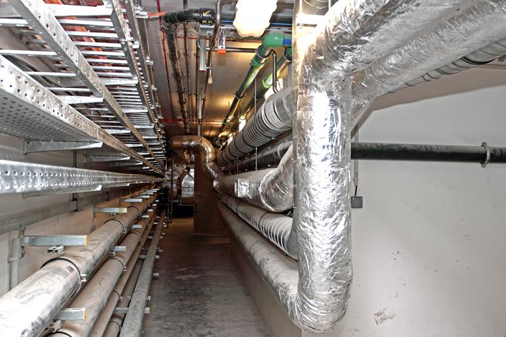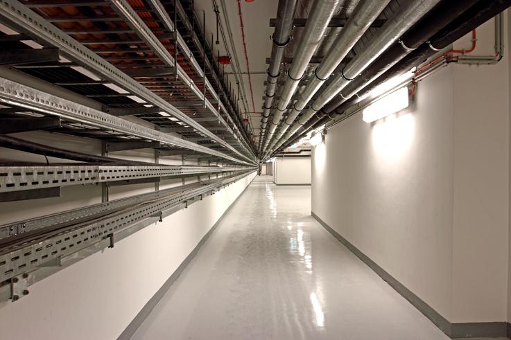 A Co-07 tender keretében kerültek telepítésre a különböző funkciójú gépészeti, erőátviteli és világítási elosztó berendezések, melyek elhelyezése az üzemi terekben, külön helyiségekben (kapcsolótér), gépészeti terekben (szellőző gépház, hűtőgépház, vízködoltó gépház) történik. Az üzemi terekben, a gépészeti vezetékekhez hasonlóan, a különböző funkciójú és feszültségszintű kábelek is jelentős területet foglalnak el. A peron alatti szinten erre a célra kábelalagutak épültek, amit beépített oltóberendezés védelmével láttak el. Itt is érvényesíteni kell a hatósági előírásokat, ezért a tűzvédelem szempontjából lényeges fogyasztók ún. funkciótartó, tűzálló tartószerkezetre kerültek. Mindemellett valamennyi kábel halogénmentes szigeteléssel készült, így az esetleges tűzesetkor nem keletkezhetnek mérgező gázok.